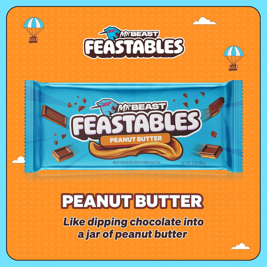 Feastables MrBeast Chocolate Bars/Barras de chocolate (10 x 60 g) - El regalo de chocolate para la verdadera bestia (Deez Nutz/Peanut Butter)