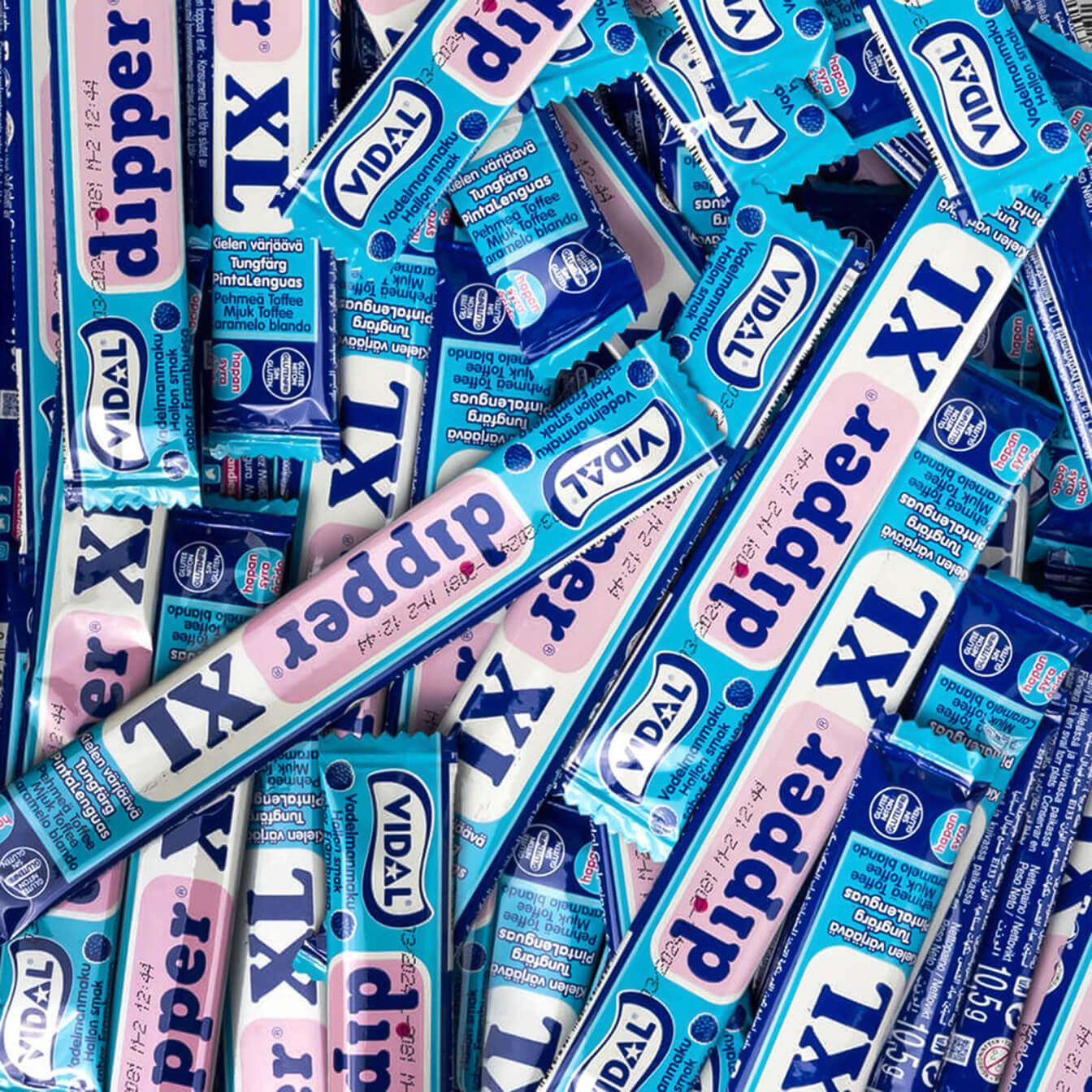 Auténtico Dipper XL, producto original de Vidal, este caramelo blando original de Vidal te conquistará con su textura que se te derretirá en boca. Además, se presenta envuelto de forma individual, lo que los hace ideales para consumirlos en cualquier momento y lugar.