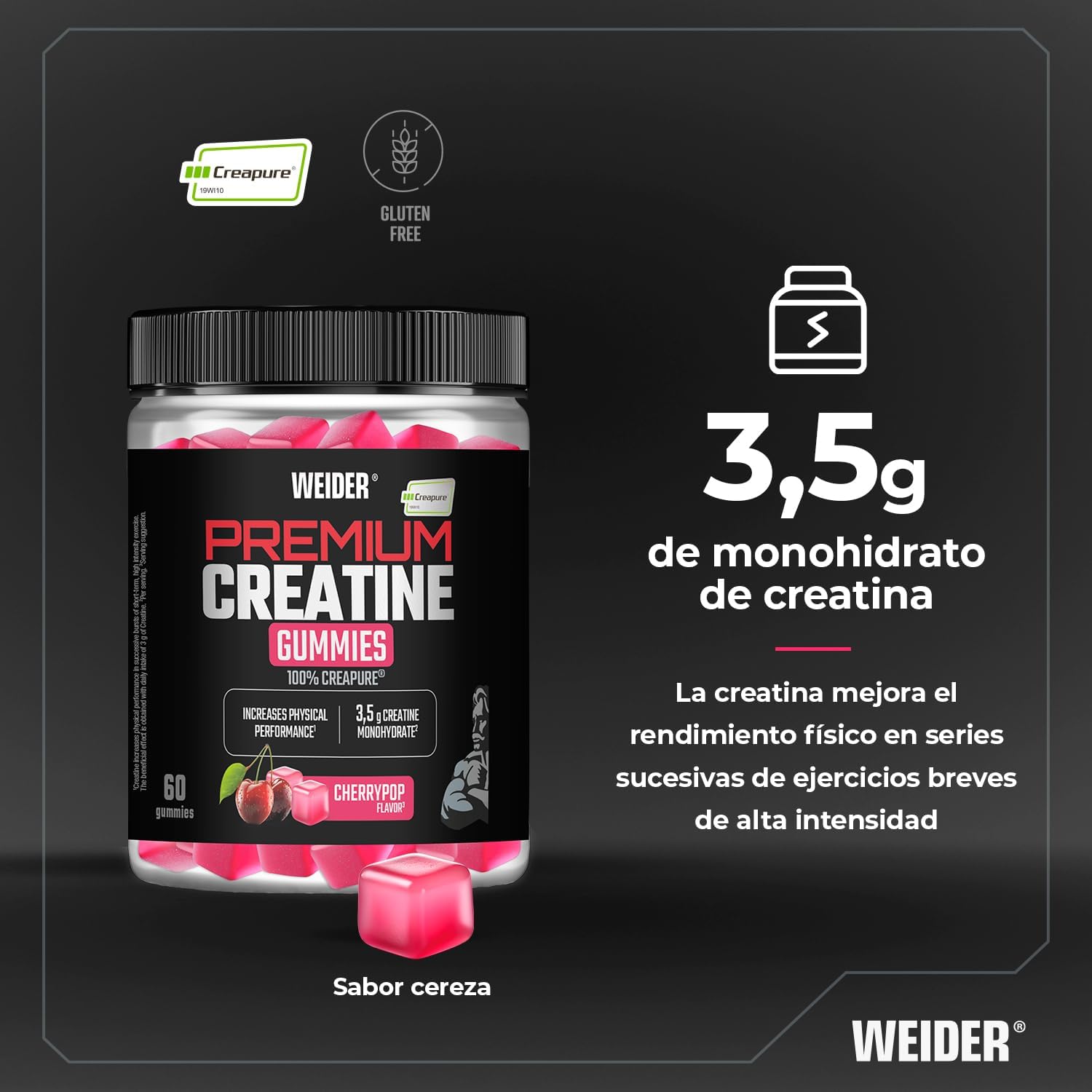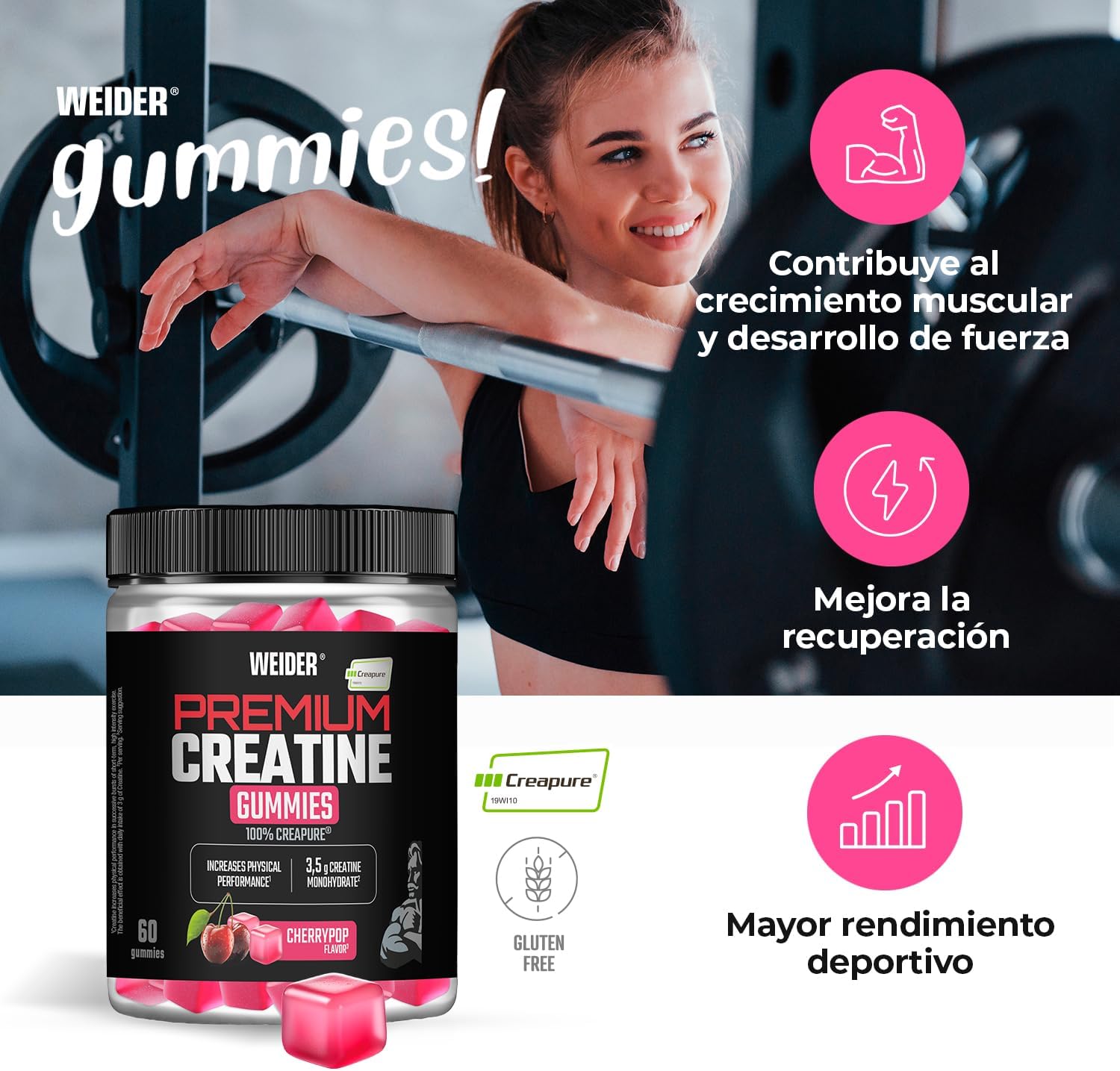- PREMIUM CREATINE GUMMIES de WEIDER, empresa líder en nutrición deportiva!
