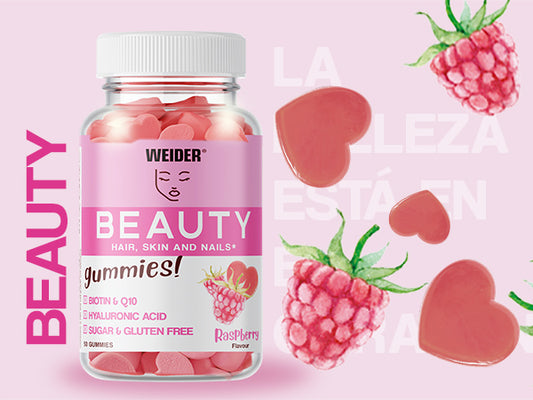 Gummies Beauty Gominolas con Fórmula Anti-Aging y Vitamina C - Sin Azúcares y Sin Gluten - Sabor a Frambuesa